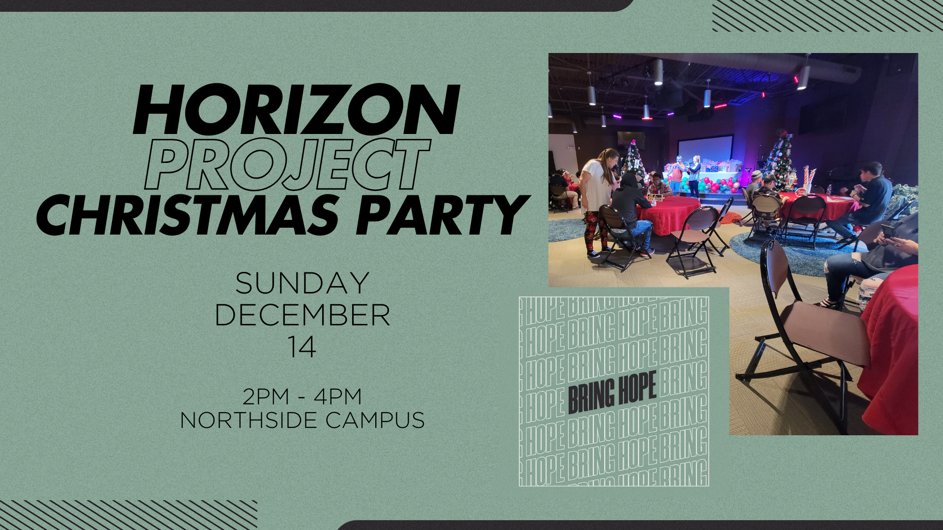 Join us in throwing a Christmas Party for youth of Horizon Project, one of our partners! The party will be Saturday, December 14 from 10am-2pm on our campus. Volunteers must be 18+ to serve and must complete a background check. Sign up to join us today!
